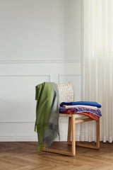Secret-plaiden giver en enkel og raffineret stemning med mulighed for flere udtryk takket være det tofarvede design. Frynserne følger farverne og tilføjer en elegant kontrast, mens den diagonale vævning på den ene side giver plaiden et unikt og fleksibelt design. Farvespektret spænder fra neutrale og minimalistiske toner til kølige og varme nuancer, hvor sammensmeltningen af farver gør det muligt at matche den med de fleste indretningsstile – både den klassiske, men også den mere farverige.